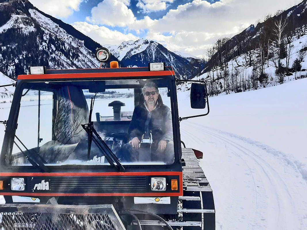 Ob beim Skating oder im klassischen Stil - das Langlaufen erfreut sich weiterhin steigender Beliebtheit. Was aber nützt der schönste Schnee, wenn die Loipen nicht gespurt und gepflegt werden. Deshalb hat das Feriendorf Ponyhof eine Pistenraupe angeschafft. Damit pflegt Rudi die Loipen entlang der Fuscher Ache und am Feriendorf Ponyhof und natürlich auch die Skipiste vom hoteleigenen Skilift.
